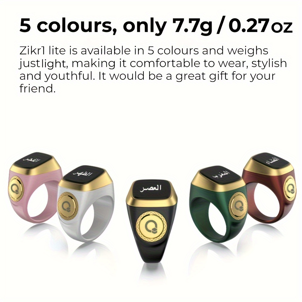 Būkite pirmas aprašęs “QIBLA ZIKR Lite Juodas Ringas – 18mm, bežonės ryšio, įkotinama litanio akumuliatorius, PC medžiaga, elegantus juodas ir auksinis dizainas su ekranu, elektroninė juoda|Elegantiškas priedas|Polikarbonato konstrukcija, Zikra markė” Atšaukti atsakymą