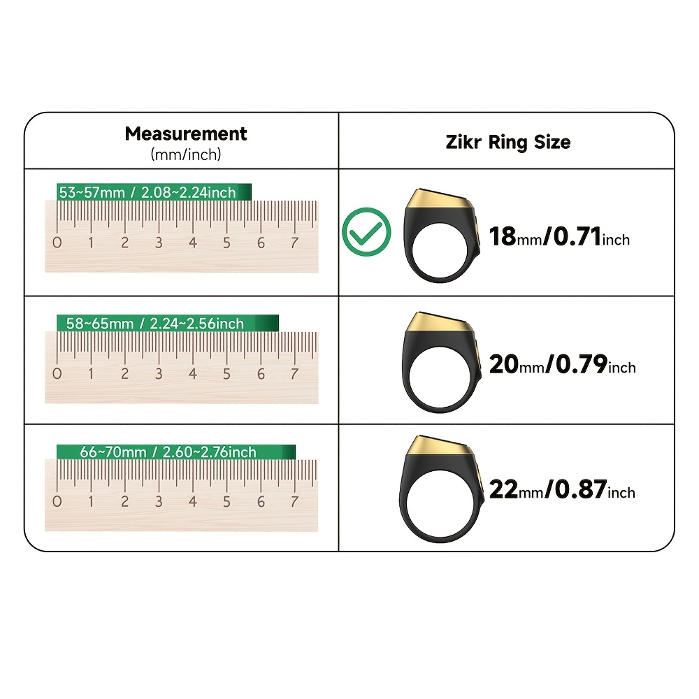 QIBLA ZIKR Lite Juodas Ringas – 18mm, bežonės ryšio, įkotinama litanio akumuliatorius, PC medžiaga, elegantus juodas ir auksinis dizainas su ekranu, elektroninė juoda|Elegantiškas priedas|Polikarbonato konstrukcija, Zikra markė
